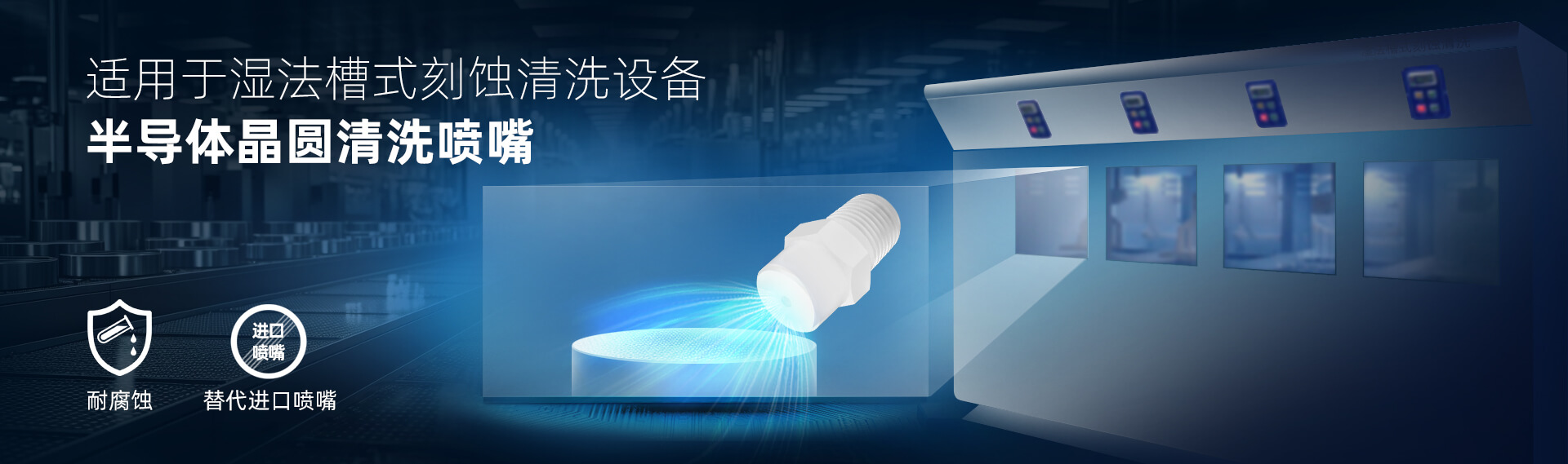 產品:實心錐噴嘴 應用: 噴嘴安裝于槽式濕法刻蝕設備里,通過配合不同化學藥液,有效去除晶圓表面顆粒、有機物和金屬離子,應用于晶圓制造、MEMS制造,以及功率器件制造領域。 工業噴嘴專業制造商🔥 品質可靠·規(guī)格齊...